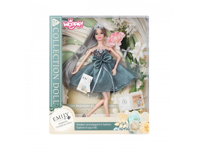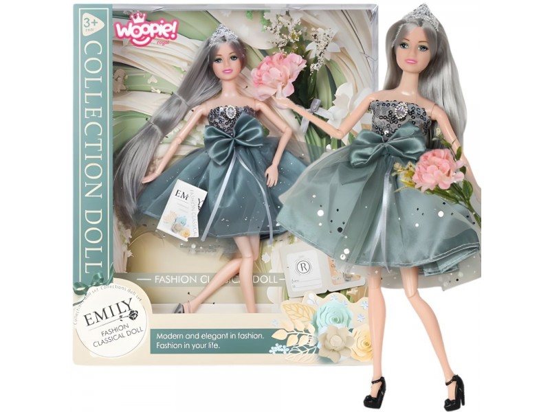 Poznaj elegancką lalkę Emi od marki WOOPIE ROYAL, która zachwyca swoim wyjątkowym stylem i klasą! Ubrana w modną, rozkloszowaną suknię z kokardą, wygląda jak prawdziwa dama gotowa na bal. Jej długie fioletowo-srebrne włosy i błyszcząca korona dodają uroku, inspirując dzieci do kreatywnej zabawy i stylizacji. To doskonały prezent dla dziewczynek, które kochają modę i marzą o byciu projektantkami. Z tą lalką każda zabawa zamieni się w elegancką przygodę pełną fantazji!