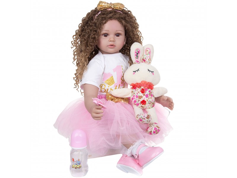 Interaktywna Lalka od marki WOOPIE z serii ROYAL jest jak prawdziwe dziecko!.Dzięki zabawie z lalką dziecko rozwija w sobie poczucie empatii oraz odpowiedzialności! Lalka jest miękka w dotyku, a jej piękne niebieskie oczy przyciągają uwagę dziecka.Zdecydowanym atutem lalki są jej piękne, długie, kręcone i lśniące włosy, wprost stworzone do czesania.Dzięki świetnej jakości włosów twoje dziecko może oddać się kreatywności podczas układania przeróżnych fryzur. Dłonie lalki są dopracowane dodając im realizmu poprzez delikatne paznokcie,a lekko zarumienione policzki podkreślają urodę lalki. Dużo elementów w zestawie - zabawa nie będzie miała końca, maluch będzie zadowolony, a Ty - będziesz mieć spokojną głowę, że spędza czas na wartościowej zabawie. Nasze lalki zostały wykonane z ogromną dokładnością i starannością o szczegóły, aby wyglądały jak prawdziwe.Lalka ma na sobie różową sukienkę z tiulem.Sukienka odcięta jest w talii złotą kokardką i ozdobiona uroczym nadrukiem.Uzupełnienie stroju stanowią różowe buciki oraz pasująca opaska na głowie dziewczynki.