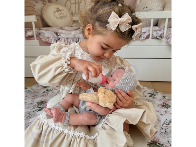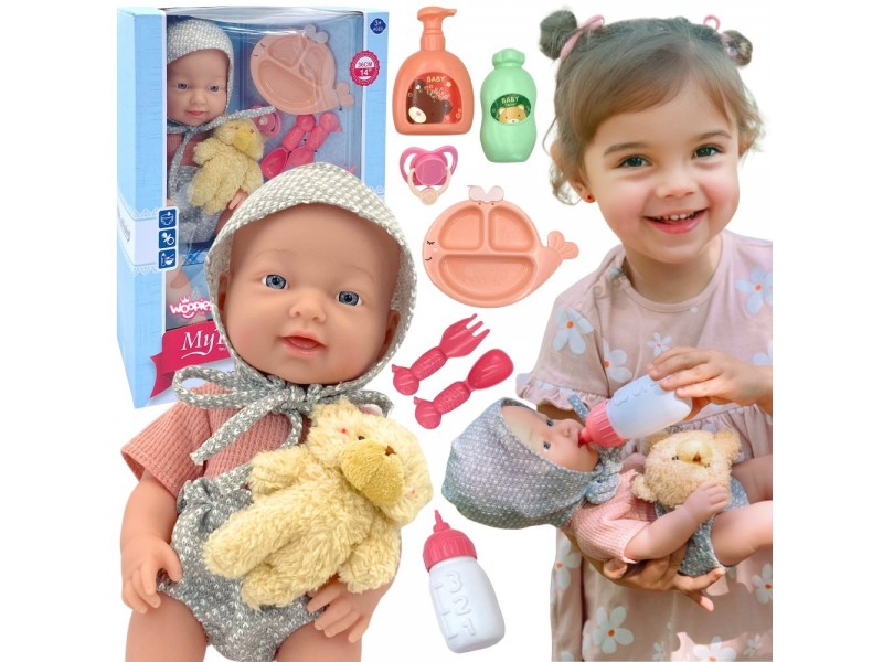 Bobas Moja ukochana Lalka od marki WOOPIE ROYAL, to świetnej jakości, starannie wykonany produkt, który na pewno pokocha twoje dziecko. Laleczka ubrana jest w śliczny komplet ubrań, pasujące do niego skarpetki oraz czapeczkę. Dodatkowo do zestawu dołączony jest uroczy miś, którego laleczka może trzymać na zmianę z butelką. Bobas ma ruchome kończyny a do ust można jej włożyć dołączony do zestawy smoczek.