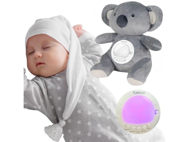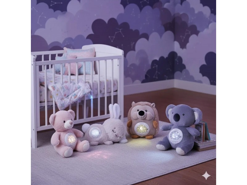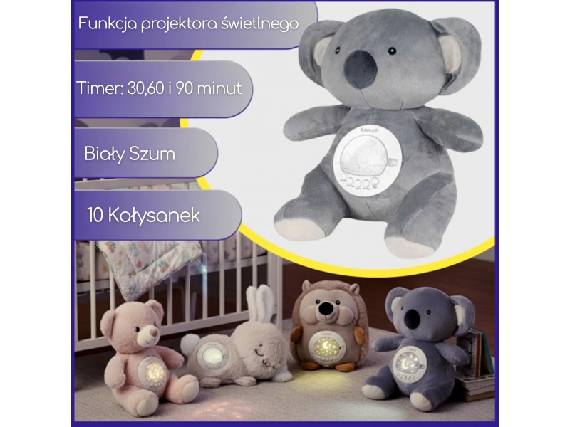 Mięciutki Miś Polarny z Projektorem od marki Woopie to idealny towarzysz snu dla każdego maluszka. Ta urocza przytulanka, wykonana z bezpiecznej, bawełnianej tkaniny, łączy w sobie funkcje projektora świetlnego i uspokajacza z muzyką. Miś pomaga ukoić dziecko do snu, emitując na suficie gwieździste niebo z księżycami w 7 różnych efektach świetlnych. Moduł dźwiękowy oferuje bogatą gamę uspokajających dźwięków: 10 delikatnych kołysanek oraz 5 rodzajów białego szumu. Moduł ma wbudowany timer z trzema opcjami czasu (30, 60 lub 90 minut), a także funkcję pętli (Loop) do ciągłego odtwarzania. Dodatkową zaletą jest możliwość prania misia w pralce (po wyjęciu modułu elektronicznego).