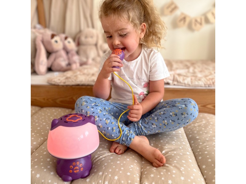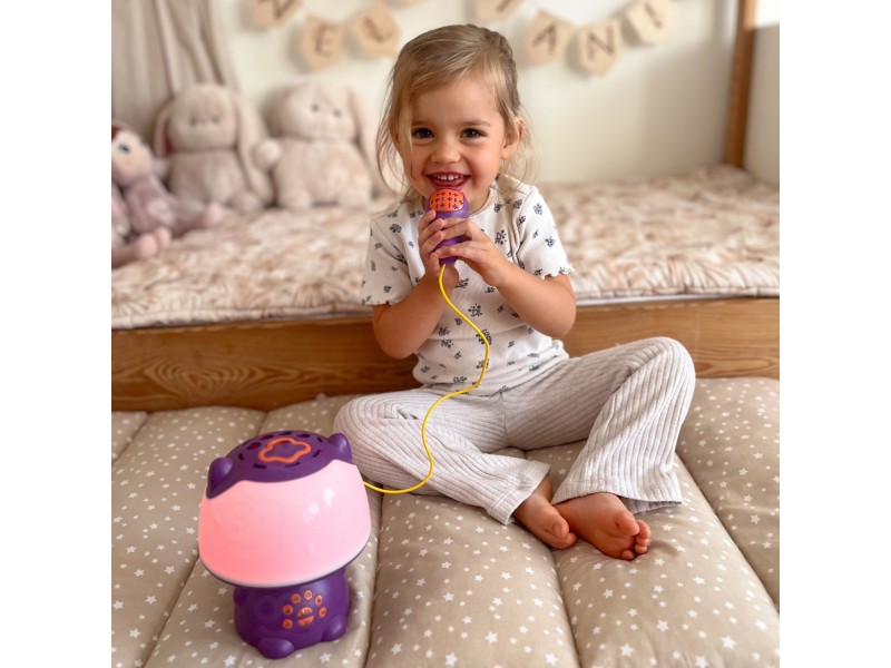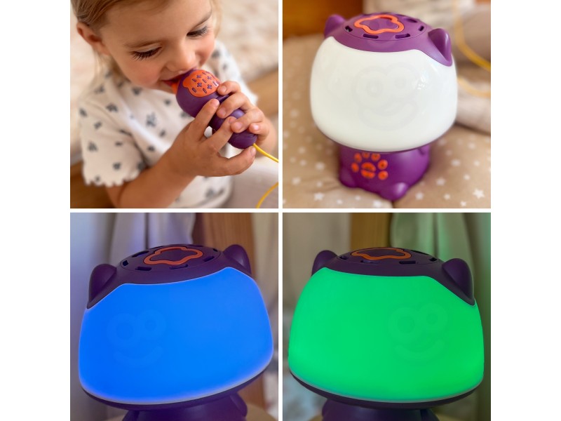 Lampka RGB z wbudowanym głośnikiem marki Woopie zamieni każdy pokój w muzyczną scenę! Interaktywny głośnik w kształcie kotka z bezprzewodowym mikrofonem pozwala dzieciom śpiewać, słuchać ulubionych piosenek i cieszyć się kolorowym podświetleniem. System dźwięku stereo 360° pozwala na komfortowe słuchanie muzyki w każdym położeniu. Intuicyjna obsługa, ciekawy design i wiele funkcji zapewnią godziny świetnej zabawy.