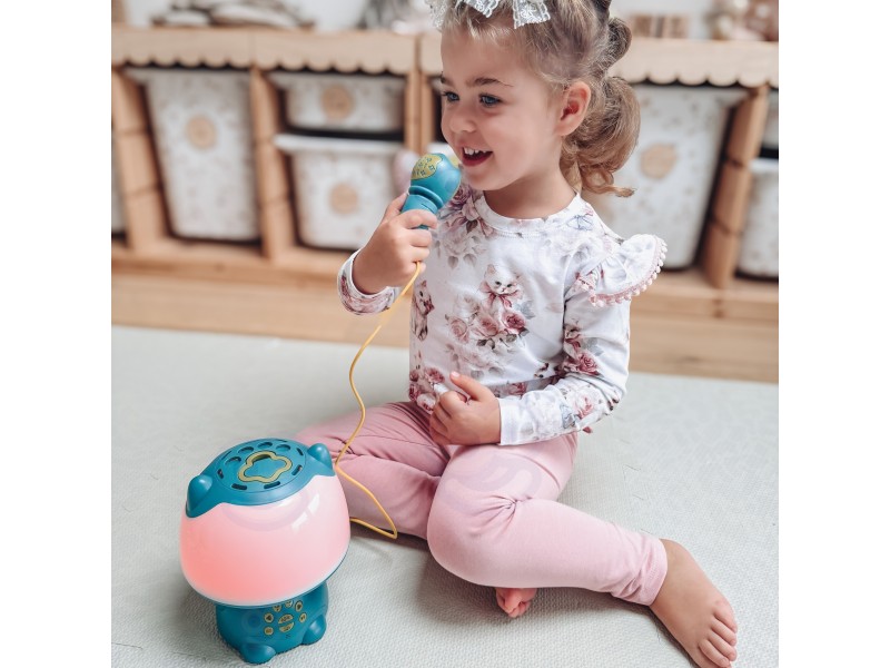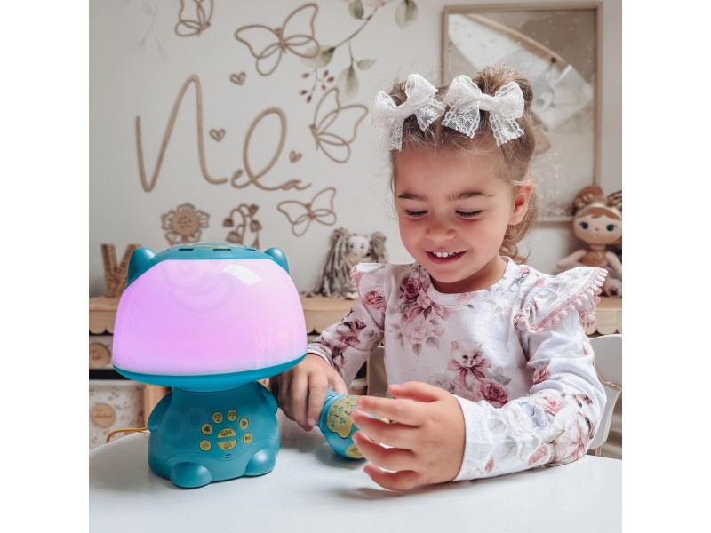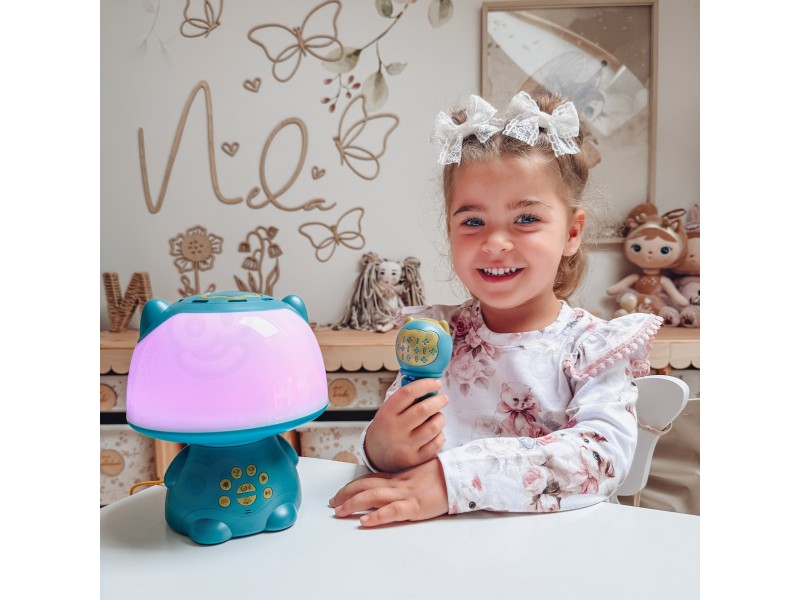 Lampka RGB z wbudowanym głośnikiem marki Woopie zamieni każdy pokój w muzyczną scenę! Interaktywny głośnik w kształcie kotka z bezprzewodowym mikrofonem pozwala dzieciom śpiewać, słuchać ulubionych piosenek i cieszyć się kolorowym podświetleniem. System dźwięku stereo 360° pozwala na komfortowe słuchanie muzyki w każdym położeniu. Intuicyjna obsługa, ciekawy design i wiele funkcji zapewnią godziny świetnej zabawy.