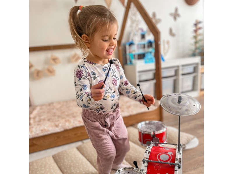 - - Wyjątkowy design z napisem "Little Band" na centralnym bębnie.