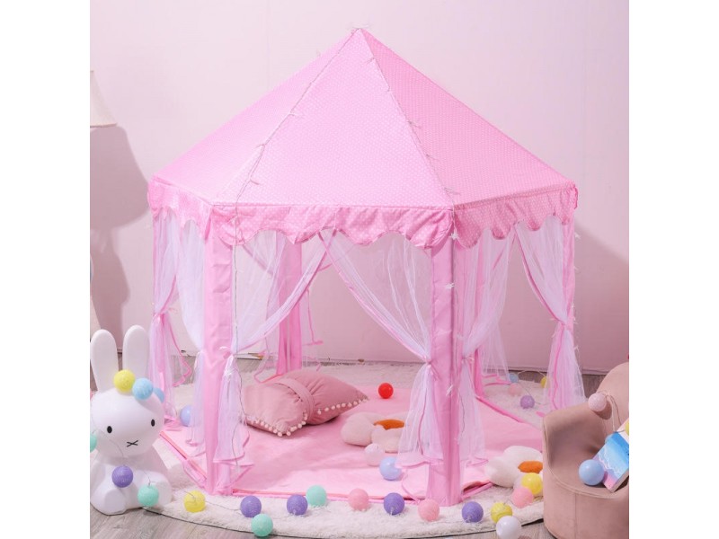 Ten uroczy różowy namiot pałacowy to idealne miejsce, gdzie Twoje dziecko będzie mogło przenieść się do świata bajkowych przygód, snuć fantastyczne opowieści i bawić się w królewskim stylu! Stworzony z dbałością o detale, stanie się sercem każdego pokoju dziecięcego.