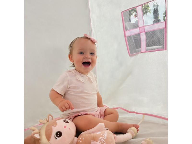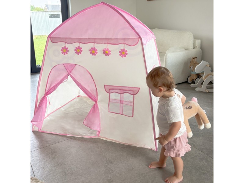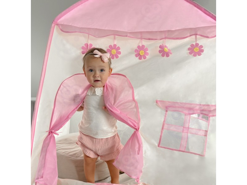 - ✔️ Namiot w kształcie domku w delikatnym odcieniu różu, który idealnie wpasuje się w wystrój pokoju każdej dziewczynki