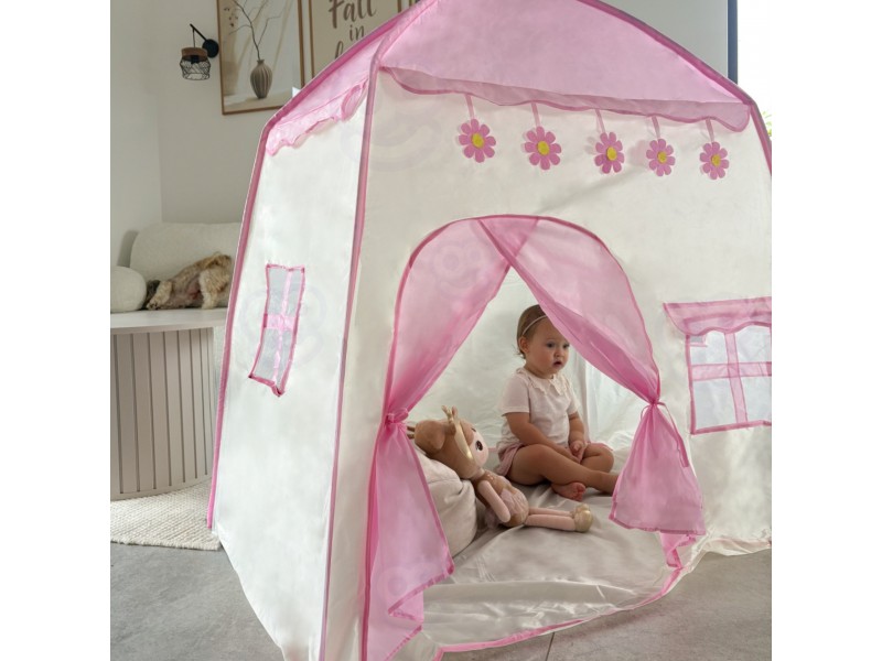 Ten uroczy różowy namiot domek od marki Woopie to idealne miejsce, gdzie Twoje dziecko będzie mogło przenieść się do świata bajkowych przygód, snuć fantastyczne opowieści i bawić się w królewskim stylu! Stworzony z dbałością o detale, stanie się sercem każdego pokoju dziecięcego.