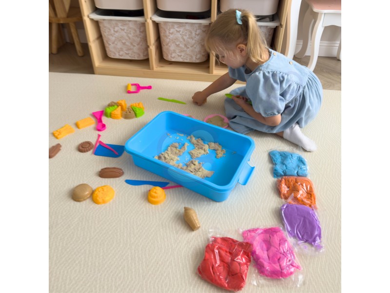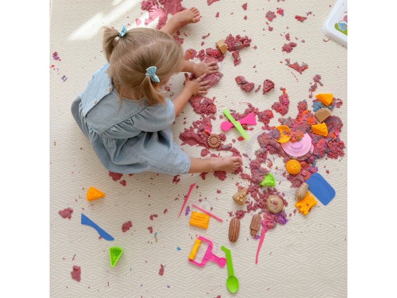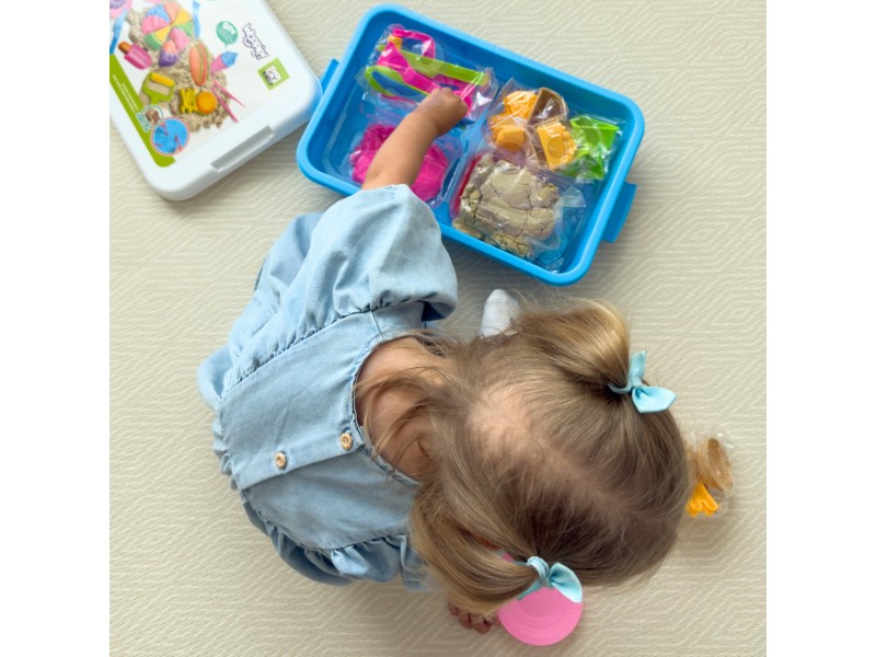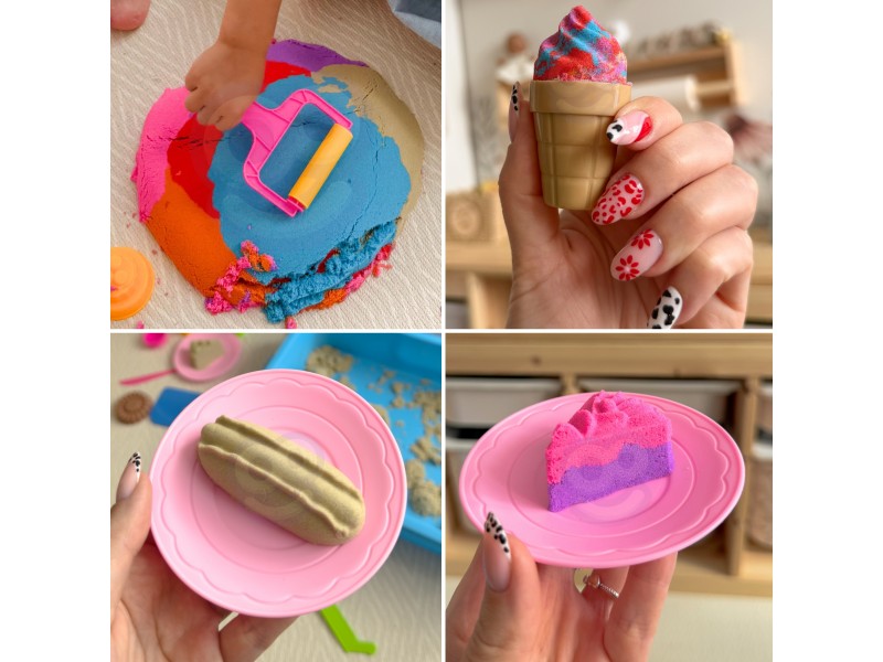 Przenieś świat kreatywnych budowli i słodkich wypieków do swojego domu dzięki Magicznemu Piaskowi Kinetycznemu Play Sand od marki Woopie! Ten fantastyczny zestaw w poręcznej walizce to gwarancja godzin fascynującej zabawy bez bałaganu. Piasek, który "czuje się świetnie" jest niezwykle miękki i przyjemny w dotyku, idealnie nadaje się do formowania, ugniatania i tworzenia nieskończonej liczby kształtów. Stwórz pyszne lody, kolorowe ciastka, hot doga, zamki czy fantazyjne figurki – ogranicza Cię tylko wyobraźnia! To idealny prezent, który rozwija zmysły i kreatywność każdego małego artysty.