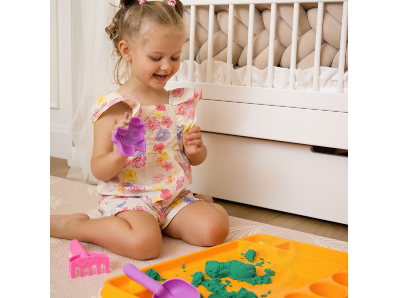 - - Piasek zachowuje swoje właściwości, umożliwiając wielogodzinną zabawę bez konieczności nawilżania