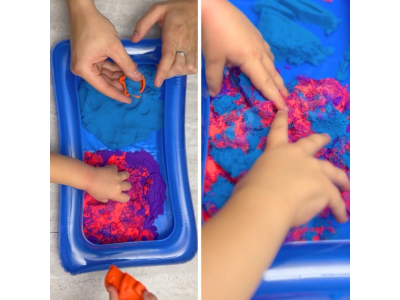 - - Piasek zachowuje swoje właściwości, umożliwiając wielogodzinną zabawę bez konieczności nawilżania