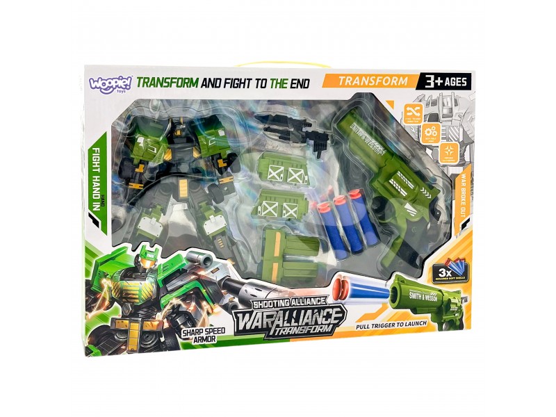 Przenieś się w sam środek ekscytującej akcji z Robotem Bojowym od Woopie! Ten dynamiczny zestaw to idealna propozycja dla małych strategów i miłośników kosmicznych potyczek. W jego skład wchodzi potężny robot, który z łatwością transformuje się w pojazd bojowy, a także rewolwer z bezpiecznymi pociskami, gotowy do natychmiastowego starcia.Przygotuj się na niezliczone godziny kreatywnej zabawy, odgrywając epickie bitwy i rozwijając swoje umiejętności strategiczne. Czas na transformację i walkę do samego końca!