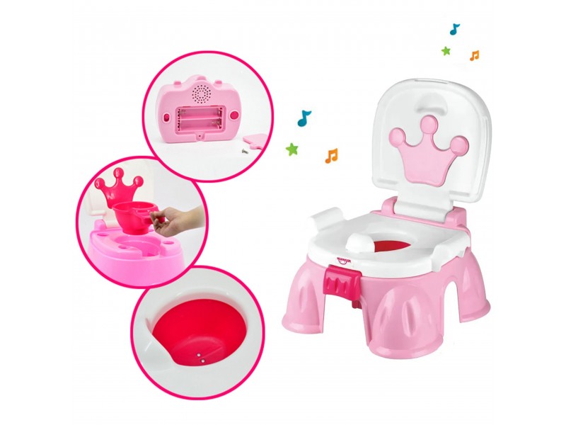 Śpiewający Nocniczek od marki WOOPIE przyspieszy u dziecka naukę samodzielnego załatwiania swych potrzeb! Nocniczek jest idealny dla dziecka przez swoje szerokie i ergonomiczne siedzisko, uchwyty z boku oraz stabilną podstawę. Czas dziecku umilą wbudowane melodie, które można włączyć i wyłączyć w każdej chwili. Jest zaprojektowany z myślą o rodzicach, ponieważ opróżnienie zajmuje parę chwil!. Złożony nocnik można używać, również jako krzesełko lub podest do umywalki. Produkt najwyższej jakości wykonany z najlepszych bezpiecznych materiałów.