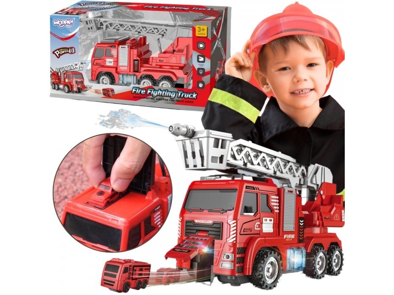 Samojeżdżący wóz strażacki to doskonała zabawka, która pozwoli każdemu małemu miłośnikowi pojazdów ratunkowych poczuć się jak prawdziwy bohater. Zabawka została zaprojektowana z dbałością o najmniejsze detale, które wiernie odwzorowują prawdziwy pojazd strażacki. Model wyposażony jest w wysuwającą się drabinę, oraz armatkę wodną. Po włączeniu pojazd zaczyna jeździć po podłodze wymachując drabiną z armatką wodną na boki, okazjonalnie wystrzeliwując z przodu pojazdu mini pojazdy straży pożarnej