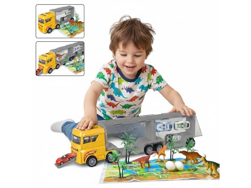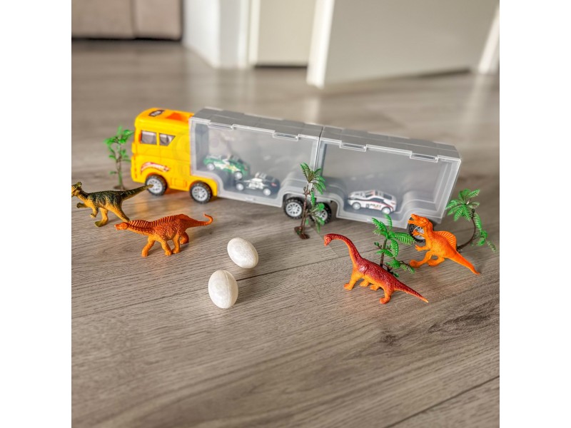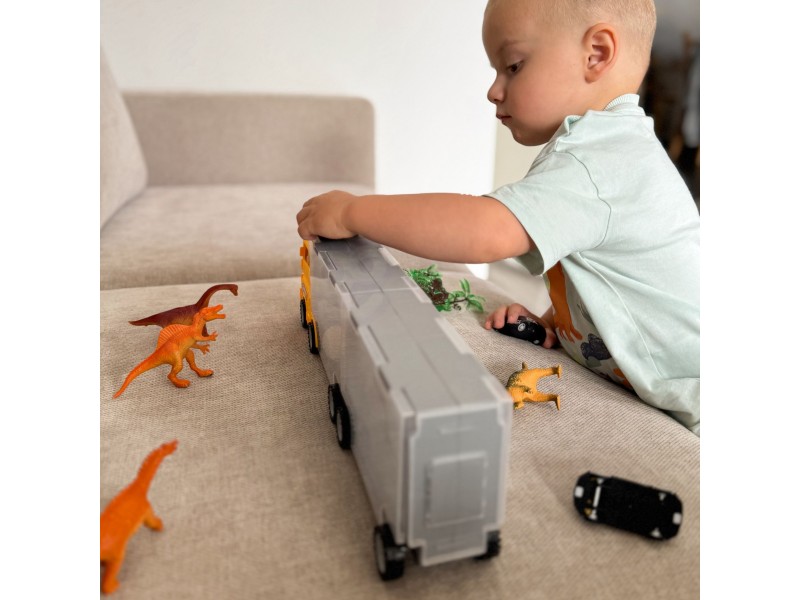 Wyrusz w niesamowitą podróż do świata dinozaurów z Transporterem Dinozaurów 2w1 od marki Woopie! To nie tylko imponująca ciężarówka do przewozu, ale także mobilna stacja do przechowywania ulubionych figurek. Zestaw, który łączy w sobie pasję do wielkich pojazdów z fascynacją prehistorią, zapewni godziny kreatywnej i rozwijającej zabawy. Idealny dla małych odkrywców, którzy uwielbiają akcję, sortowanie i opowiadanie własnych, dinozaurowych historii!