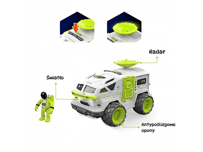 - - Interaktywny pojazd kosmiczny z ruchomym radarem i otwieraną szybą