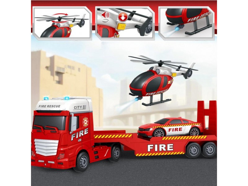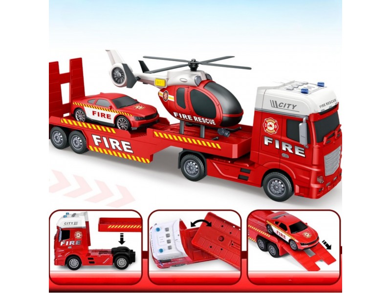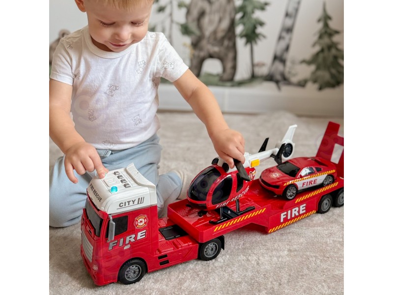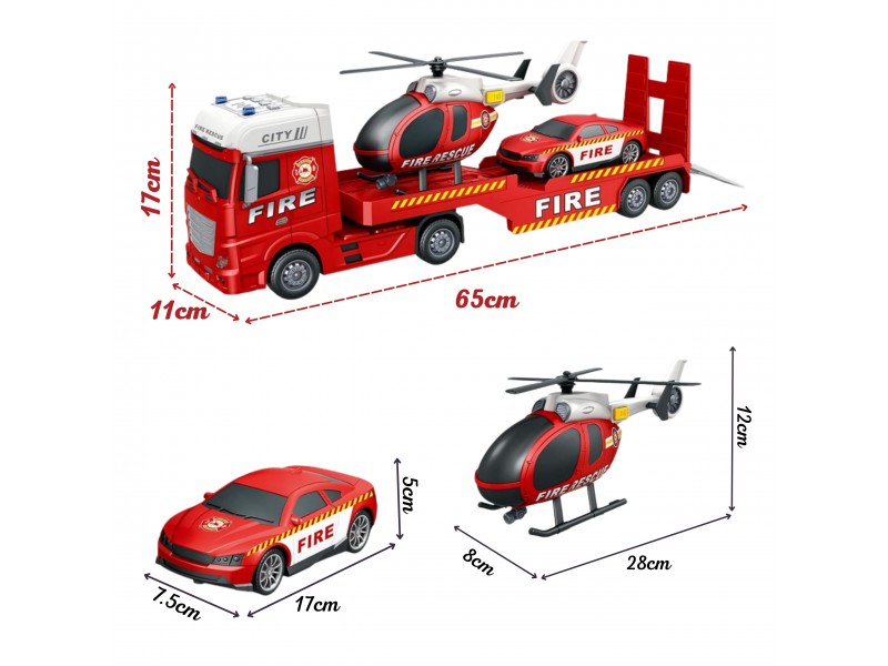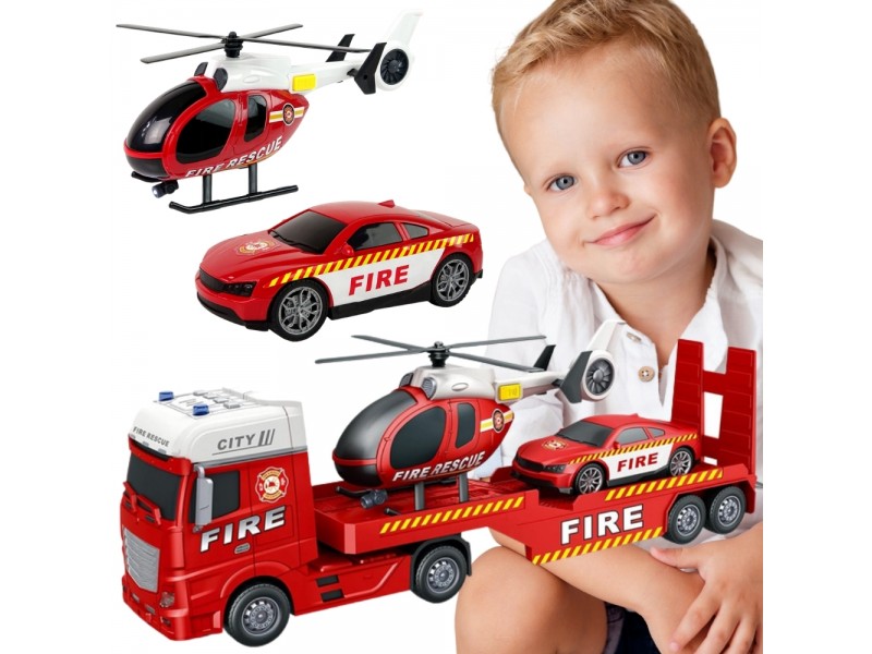 Zestaw straży pożarnej z lawetą, helikopterem i samochodzikiem od marki Woopie dostarczy Twojemu dziecku niezliczone godziny kreatywnej i emocjonującej zabawy. Zabawka została zaprojektowana z myślą o najmłodszych użytkownikach, łącząc w sobie edukację z rozrywką, a także rozwój ważnych umiejętności manualnych i społecznych. Każdy element zestawu wykonano z trwałych i bezpiecznych materiałów, które są przyjazne dla dzieci i odporne na intensywne użytkowanie. Dzięki temu zabawka jest nie tylko atrakcyjna wizualnie, ale również funkcjonalna i wytrzymała. Zestaw zawiera klasyczne pojazdy, które dzieci doskonale znają i uwielbiają – lawetę, która umożliwia transport innych pojazdów, helikopter z realistycznie obracającym się śmigłem oraz samochód straży pożarnej. Zarówno laweta jak i helikopter posiadają funkcje świetlne i dźwiękowe aktywowane przyciskami. Zestaw zainteresuje dzieci fascynujące się motoryzacją, akcjami ratunkowymi oraz zabawą w strażaka, ucząc jednocześnie odpowiedzialności i pracy zespołowej.
