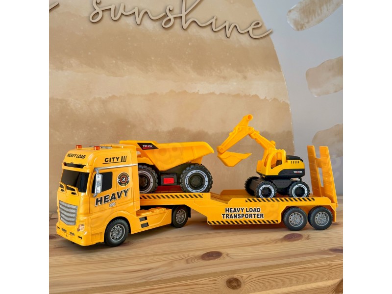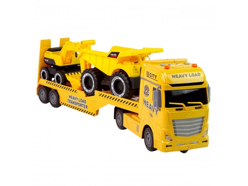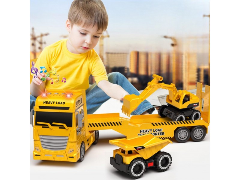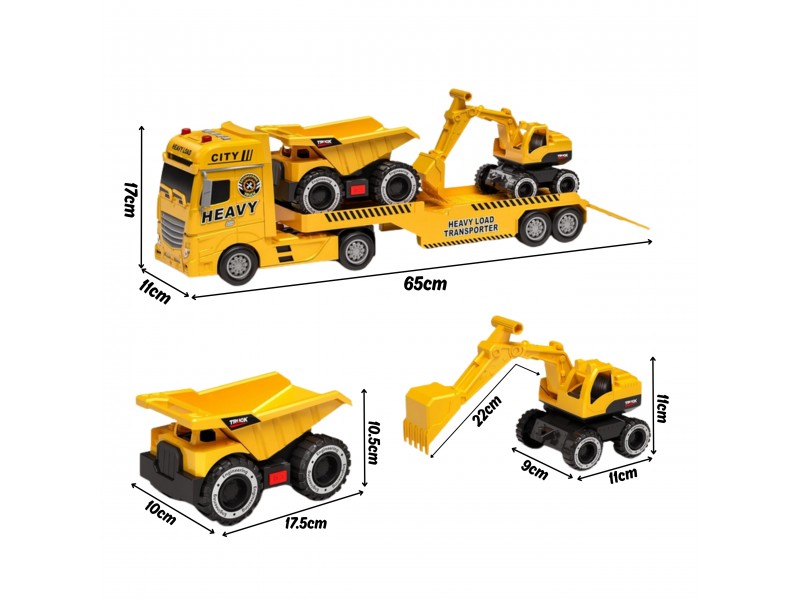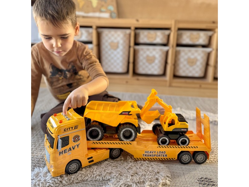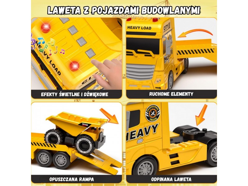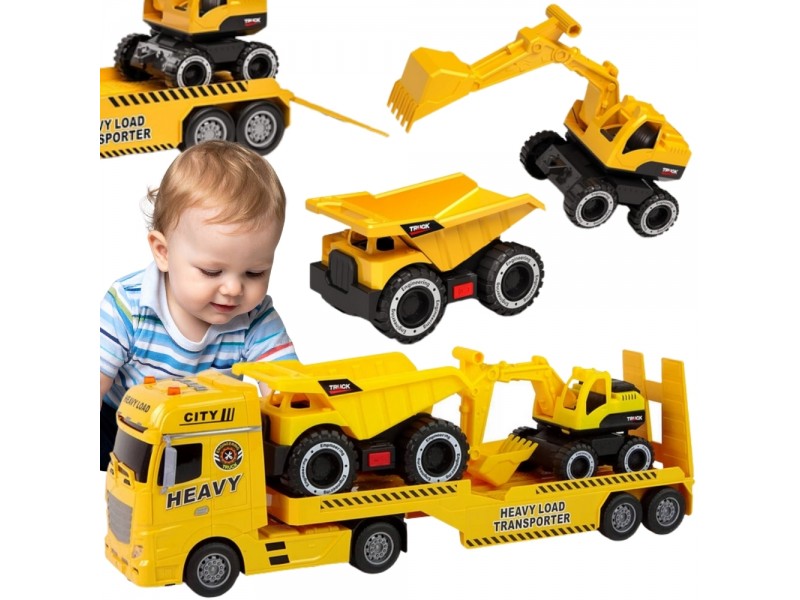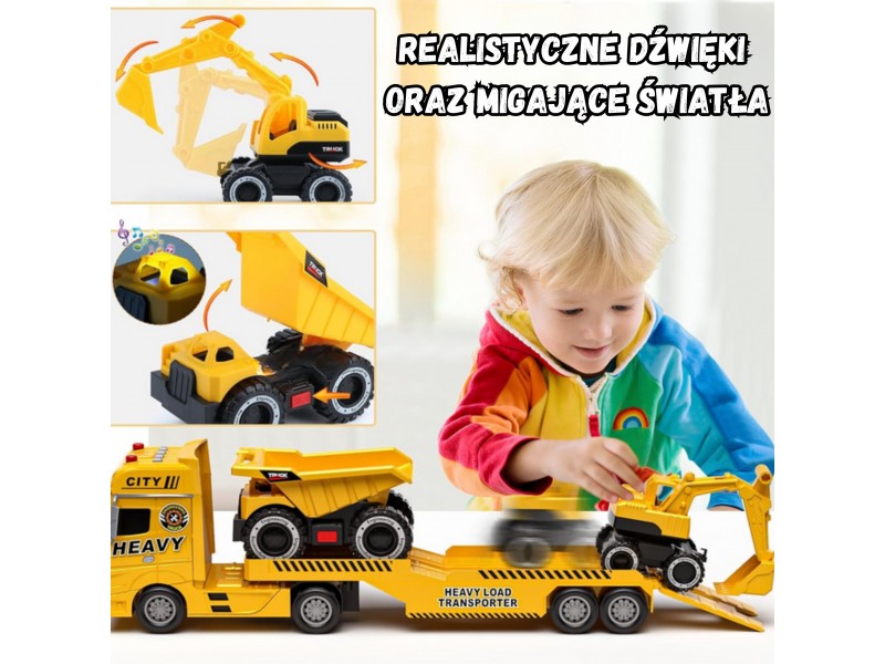 - - 3 pojazdy budowlane w zestawie – laweta, koparka i wywrotka dają wiele możliwości zabawy