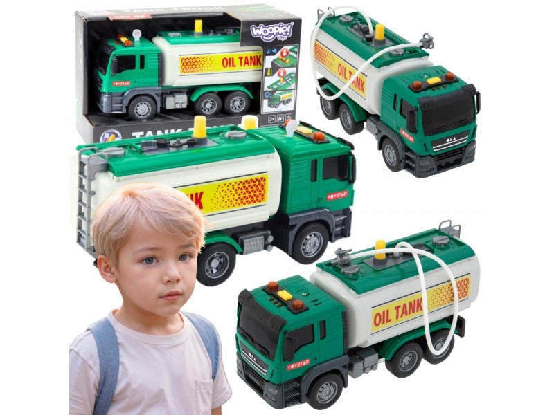 Marzenie każdego małego fana motoryzacji może się spełnić dzięki wyjątkowej zielonej cysternie na wodę od marki Woopie! Ta wspaniała zabawka to coś więcej niż tylko zwykły samochód – to w pełni interaktywny pojazd techniczny, który zachwyci każdego malucha swoim wyglądem, funkcjami i realistycznymi detalami. Zaprojektowana z dbałością o każdy szczegół zielona cysterna została wyposażona w liczne funkcje, które przenoszą zabawę na zupełnie nowy poziom. Zabawa tą ciężarówką nie ogranicza się jedynie do pchania jej po podłodze. Dzięki wbudowanemu zbiornikowi na wodę, funkcjonalnej pompce oraz elastycznemu wężowi dziecko może faktycznie symulować tankowanie. Na górze pojazdu znajduje się żółty przycisk, który służy do pompowania wody – wystarczy kilka naciśnięć, by z końcówki węża zaczęła lecieć woda, co dostarcza niezwykłych wrażeń i pobudza wyobraźnię. Na dachu kabiny umieszczono przyciski uruchamiające realistyczne dźwięki i migające światła, które doskonale odwzorowują prawdziwe sygnały pojazdów specjalistycznych. Dzięki temu dziecko nie tylko bawi się, ale i uczy zasad działania maszyn oraz odgrywa różne scenariusze – od tankowania, po transport cennych cieczy. Solidna konstrukcja, bezpieczne materiały i szczegółowe wykonanie sprawiają, że zabawka jest idealna nawet dla młodszych dzieci. Żywa kolorystyka, dynamiczna forma i ruchome elementy sprawiają, że to nie tylko zabawka, ale i prawdziwe narzędzie edukacyjne, które zachęca do aktywności, poznawania świata i odgrywania ról. Ta ciężarówka to doskonały pomysł na prezent – gwarantuje mnóstwo radości, rozwija ważne umiejętności i na długo przyciąga uwagę dziecka!