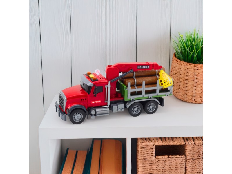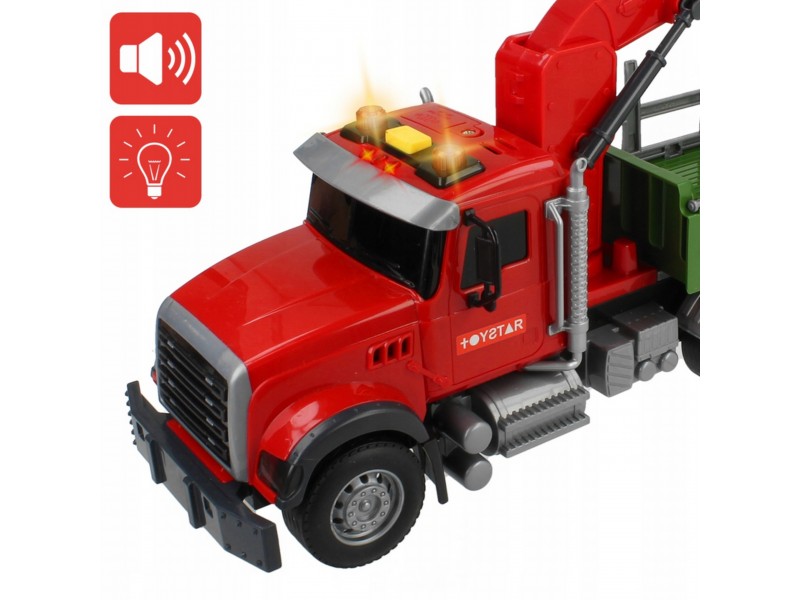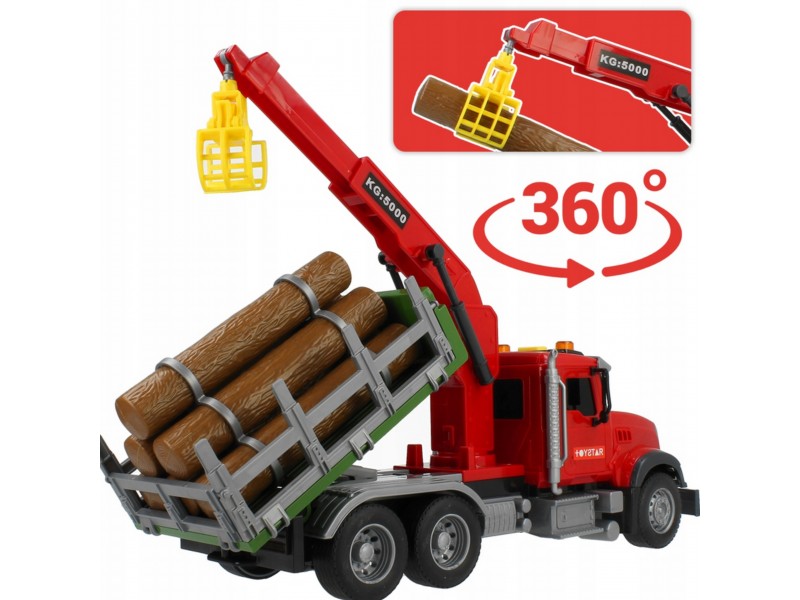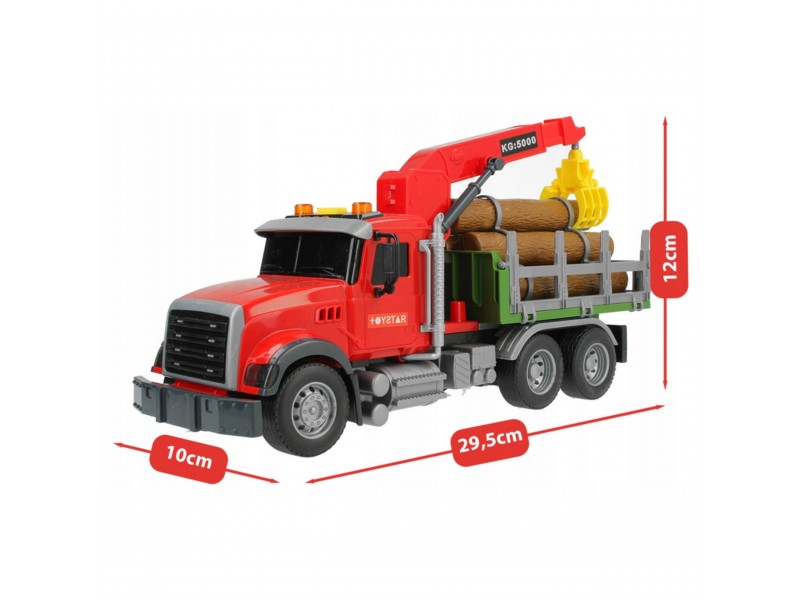 Ciężarówka z dźwigiem do drewna od marki Woopie to rozbudowana, interaktywna zabawka, która przenosi dzieci w fascynujący świat transportu i pracy ciężkiego sprzętu. To znacznie więcej niż zwykły samochód – to mobilne centrum operacyjne, które daje możliwość zabawy w załadunek i rozładunek drewna, symulację transportu, obsługę dźwigu i wiele więcej. Zabawkowy pojazd wzorowany jest na prawdziwych ciężarówkach wykorzystywanych w przemyśle drzewnym. Posiada ruchomy dźwig obrotowy z mechanicznym chwytakiem, który umożliwia realistyczne chwytanie i przenoszenie dołączonych bali drewna. Dzięki temu dziecko może wcielać się w operatora dźwigu, kierowcę transportera lub pracownika leśnictwa. To zabawka, która oferuje szeroką gamę scenariuszy i kreatywnych możliwości. Wrażenia z zabawy potęgują efekty świetlne i realistyczne dźwięki silnika, klaksonu i pracy maszyny, które aktywowane są przyciskami umieszczonymi na kabinie. Estetyczne wykonanie, żywa kolorystyka i dbałość o detale sprawiają, że zabawka wygląda efektownie i profesjonalnie. Obrotowy dźwig można precyzyjnie sterować ręcznie – podnosić i opuszczać chwytak, przekręcać go w lewo i prawo oraz chwytać ładunek. To idealna zabawka dla dzieci, które interesują się pojazdami, budową, lasem, transportem i maszynami roboczymi.