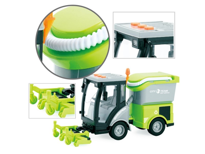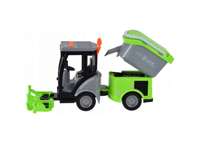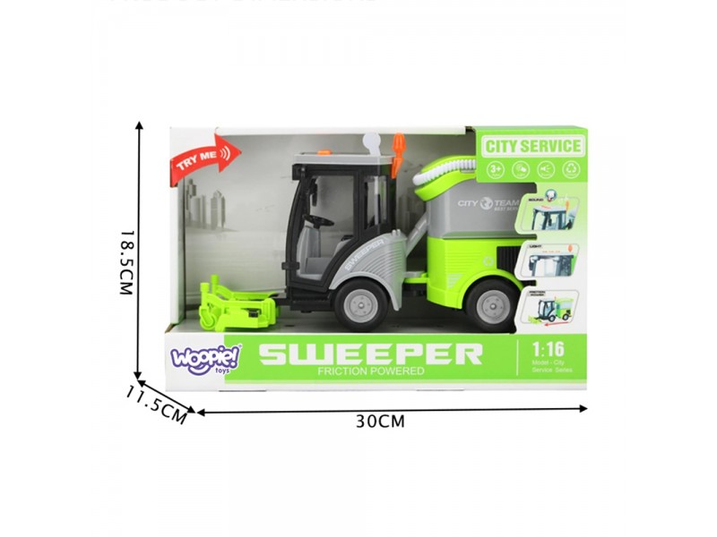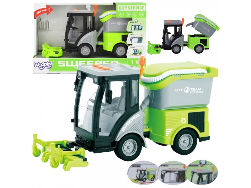 Miejska zamiatarka marki Woopie to nowoczesny pojazd z napędem frykcyjnym, który wprowadzi małego odkrywcę w fascynujący świat miejskich służb porządkowych. Ten realistyczny model w skali 1:16 wyposażony został w dźwięki silnika i światła, które sprawiają, że każda zabawa staje się jeszcze bardziej ekscytująca. Dzięki ruchomym szczotkom i szczegółowemu wykonaniu kabiny kierowcy, dziecko może wcielić się w rolę prawdziwego operatora maszyn czyszczących i poczuć się jak bohater miasta dbający o czystość ulic.