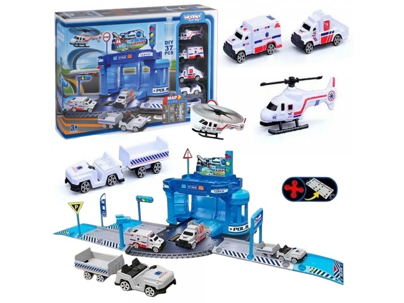 - - Zawiera dodatkowe elementy, takie jak stacja paliw, myjnia samochodowa i szlaban