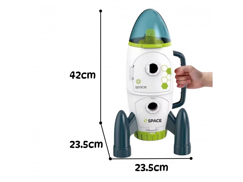 Przenieś swoje dziecko w fascynujący świat kosmosu z Interaktywną rakietą kosmiczną od Woopie! Ten niezwykle kreatywny zestaw zabawkowy to idealne połączenie nauki i zabawy dla małych odkrywców. To nie jest zwykła zabawka – to zestaw do eksploracji galaktyki, który zapewni godziny twórczej i edukacyjnej zabawy. Dzięki licznym funkcjom i realistycznym szczegółom dziecko może wcielić się w rolę astronauty, dowódcy misji czy operatora łazika. Rakieta została stworzona tak, by stymulować wyobraźnię i rozwijać umiejętności poprzez zabawę. Produkt składa się z kilku interaktywnych elementów, z których każdy ma inne funkcje. Figurkę astronauty można umieścić w obrotowym fotelu w górnej kapsule, a następnie opuścić do dolnej części rakiety, gdzie czeka gotowy do jazdy łazik kosmiczny. Całość uzupełnia efekt dźwięku odliczania do startu oraz świecąca podstawka, co czyni zabawę jeszcze bardziej realistyczną i ekscytującą. Idealna do zabawy w domu, w przedszkolu, a także w ogrodzie czy na plaży. Dzięki poręcznemu uchwytowi dzieci mogą z łatwością przenosić rakietę i kontynuować kosmiczne misje wszędzie tam, gdzie tylko poniesie ich wyobraźnia. To również świetna opcja na rodzinne pikniki – dziecko może zabrać swoją rakietę w plener, dzielić się zabawą z rodzeństwem czy rówieśnikami i przeżywać przygody w każdym miejscu! Każdy element zestawu został zaprojektowany z myślą o bezpieczeństwie, jakości i rozwoju dziecka. Zabawka nie tylko zapewnia mnóstwo rozrywki, ale także wspiera rozwój logicznego myślenia, motoryki i kreatywności. Idealny prezent dla każdego fana kosmosu!