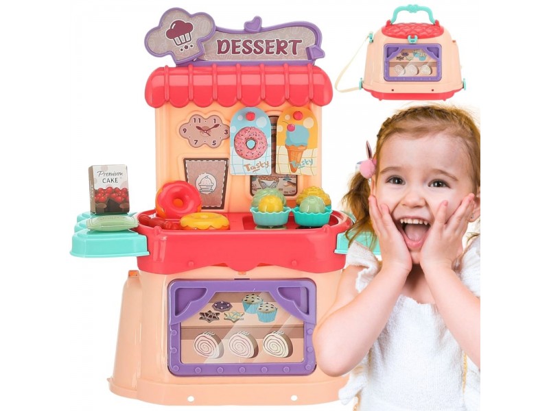Zestaw Małego Cukiernika 3w1 od marki WOOPIE pozwoli Twojemu dziecku bawić się w szefa kuchni, sprzedawce i lodziarza - wszędzie i kiedy tylko zechce! Dziecko uwielbia pomagać rodzicom w kuchni oraz bawić się w sprzedawcę wspólnie z przyjaciółmi, dlatego to idealny zestaw dla każdego malucha. Zestaw zawiera 25 el.: wszystkie potrzebne rzeczy, które posiada każda lodziarnia. Zabawka pełni funkcję walizki, którą można zamienić również w torbę - co pozwoli zabrać wszędzie swoją przenośną lodziarnie. Odgrywanie ról i naśladowanie rodziców/zawodów rozwija świadomość Twojego dziecka oraz pobudza wyobraźnie i kreatywność.
