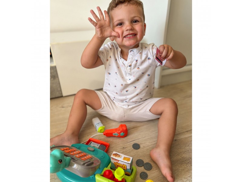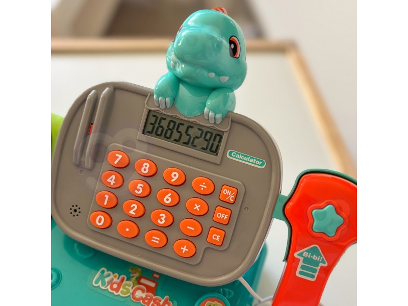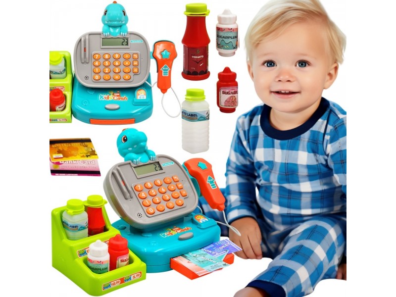 - - kasę sklepową z kalkulatorem i otwieraną kasetka na przechowywanie pieniążków,