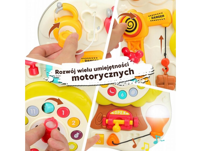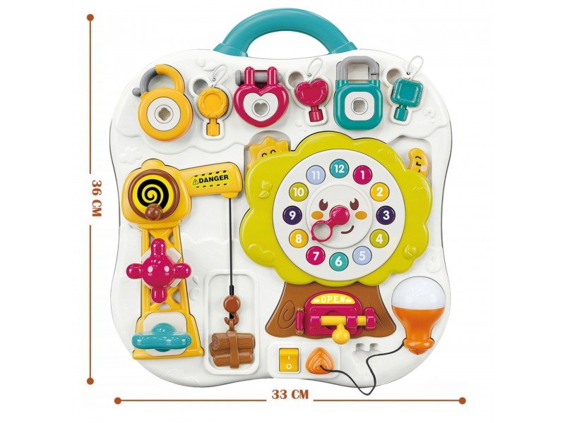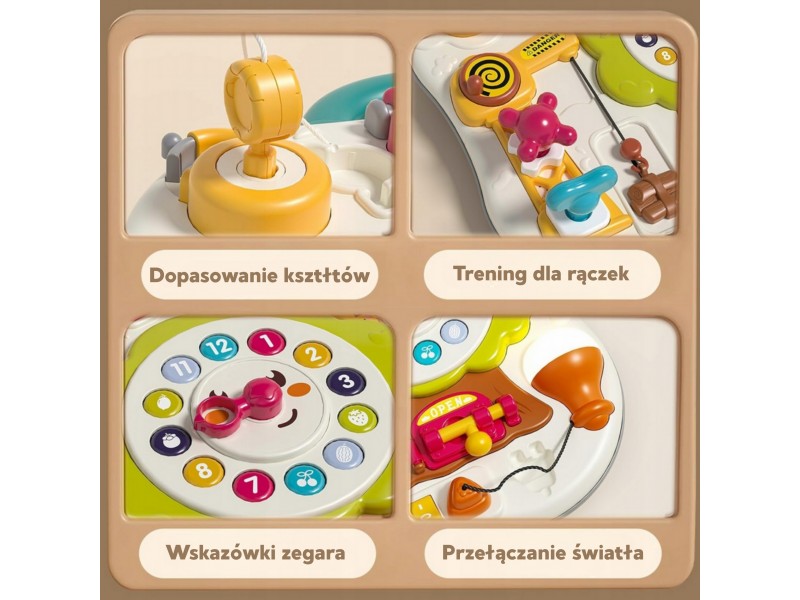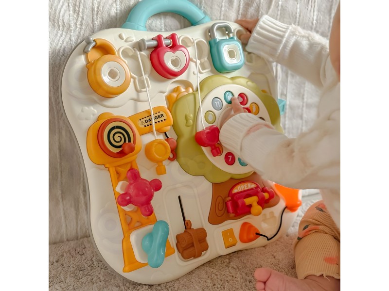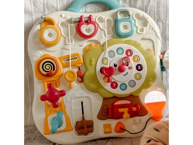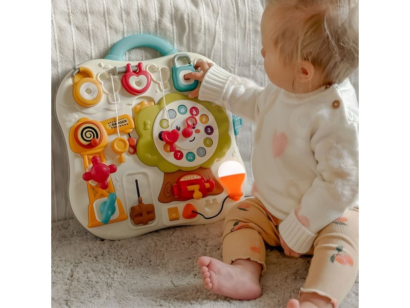 Edukacyjna tablica manipulacyjna od marki Woopie to doskonała zabawka dla najmłodszych, która rozwija poprzez zabawę. Dzięki kolorowym elementom, zegarowi, pokrętłom i przełącznikom dziecko uczy się logicznego myślenia i ćwiczy zdolności manualne. Różnorodne atrakcje sprawiają, że maluch angażuje się na długie godziny, a przy tym zdobywa nowe umiejętności. Zabawka jest lekka i posiada wygodną rączkę, dlatego można ją łatwo przenosić. To świetny pomysł na prezent edukacyjny, który łączy naukę i radość z zabawy.