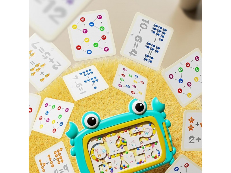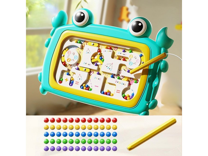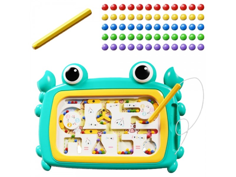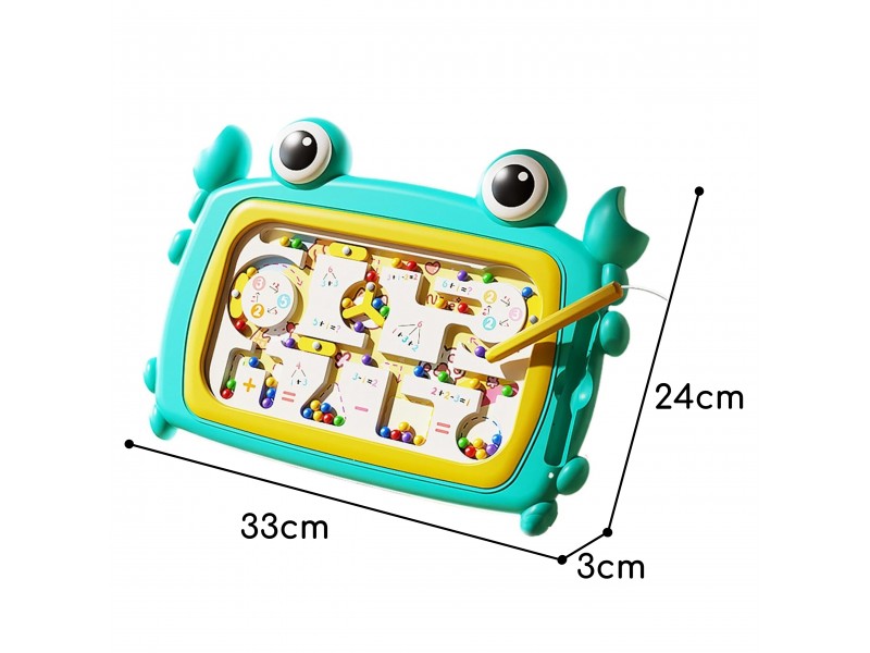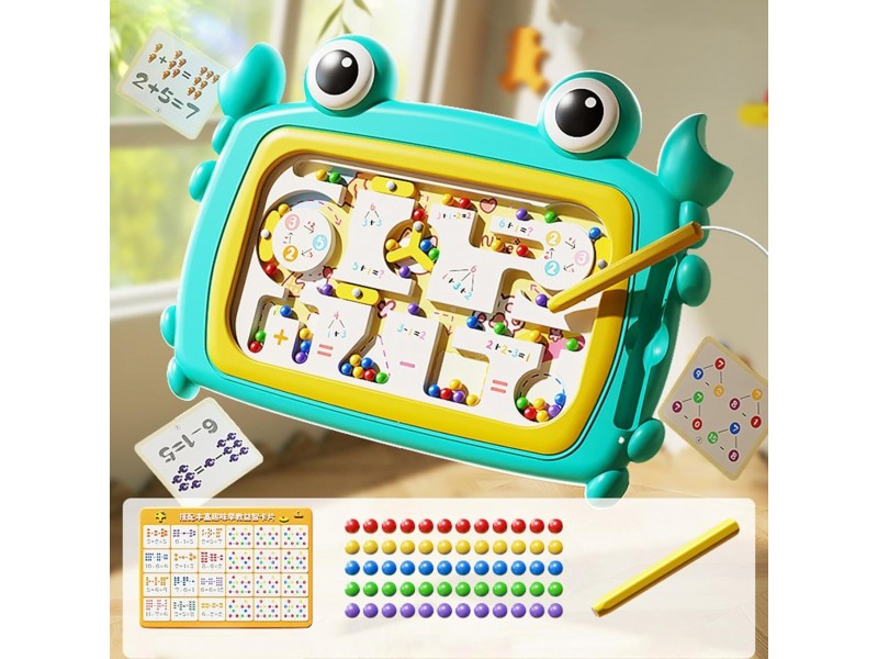 Odkryj fascynujący świat nauki przez zabawę z naszą magnetyczną tablicą edukacyjną w kształcie kraba od marki Woopie! Tablica została zaprojektowana z myślą o wczesnej edukacji i wspiera rozwój sensoryczny, manualny i poznawczy najmłodszych poprzez angażujące aktywności, takie jak sortowanie kulek przy pomocy magnetycznego rysika, nawigacja po labiryncie i trzymanie rysika w prawidłowy sposób. Poprzez układanie kuleczek w poszczególne komory dziecko tworzy proste równania matematyczne, bawiąc się i ucząc jednocześnie. Do ćwiczeń matematycznych można wykorzystać dołączone do zestawu karty z działaniami. Wykonana z wysokiej jakości, bezpiecznych materiałów, gwarantuje trwałość i komfort użytkowania przez wiele godzin aktywnej zabawy. Jaskrawy turkusowy kolor tablicy oraz jej kształt w formie kraba zachęcają malucha do zabawy. Tablica nie wymaga baterii, a dzięki kompaktowym rozmiarom idealnie sprawdzi się zarówno w domu, jak i w podróży.