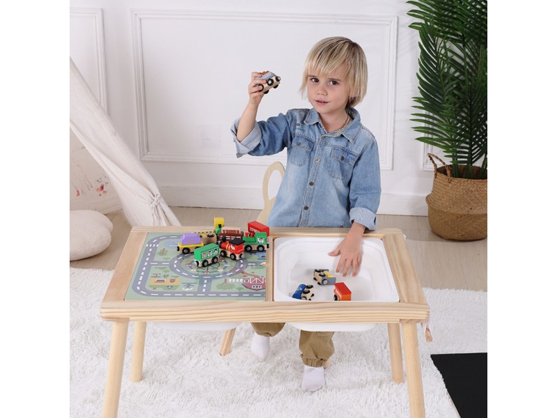 - - kreatywność i wyobraźnię dziecka – stolik pozwala tworzyć nieograniczone rysunki, projekty i scenariusze zabaw, które pobudzają fantazję i uczą myślenia poza schematami