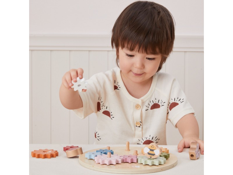 Drewniane koła zębate od marki Viga z serii PolarB, są idealną zabawką dla dzieci, które chcą odkrywać otaczający ich świat. Ta kolorowa zabawka składa się z 10 kół zębatych, które dziecko układa, tworząc poruszający się mechanizm – świetna zabawa połączona z nauką! Urocze wzory i pastelowe kolory przyciągają uwagę, rozwijając jednocześnie ciekawość i logiczne myślenie. Każde przekręcenie kółek to dla malucha radość odkrywania, jak działa ruch. To idealny prezent dla małych odkrywców świata, którzy kochają kreatywną i mądrą zabawę!