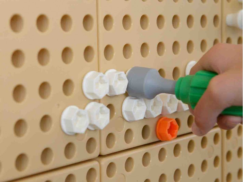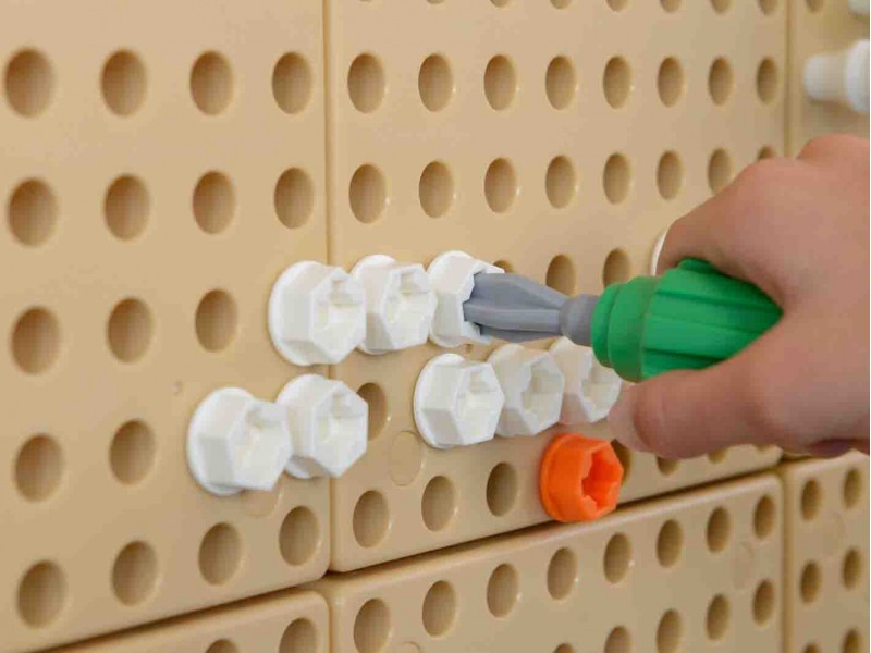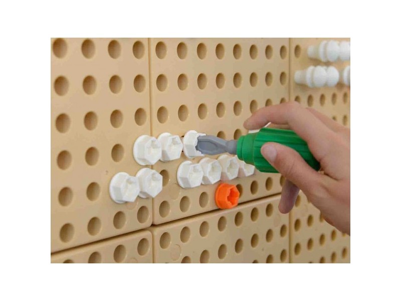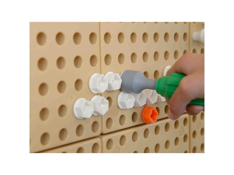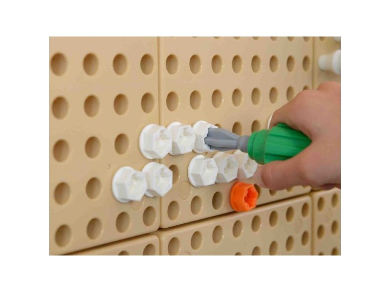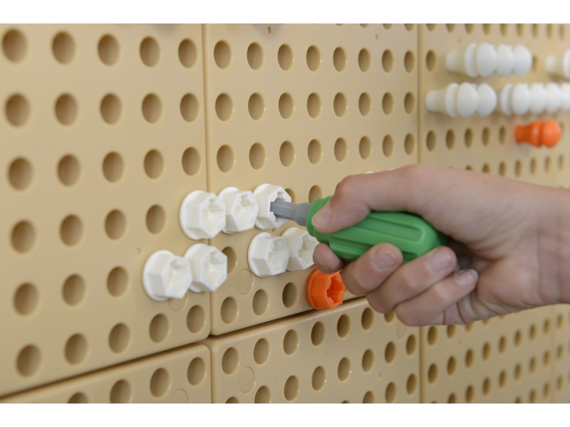 Na Tablicy Naukowo-Kreatywnej Masterkidz STEM, używając specjalnego zestawu narzędzi, dzieci mogą wkręcać śruby, montować różne elementy, oraz majsterkować do woli. Do zabawy niezbędna będzie paczka śrub Masterkidz.