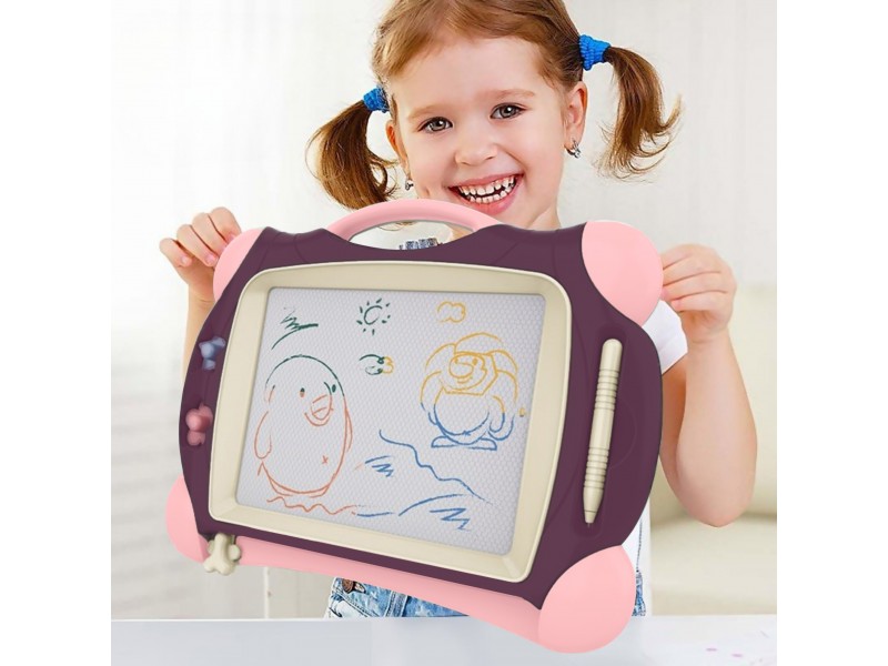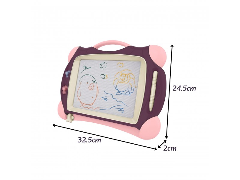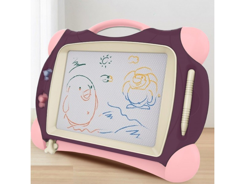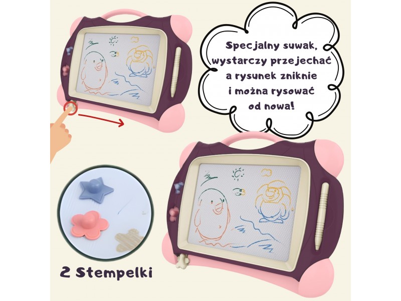 Znikopis Tablica Magnetyczna od marki WOOPIE daje możliwość kreatywnej zabawy na długi czas! Tablica zachęca do pisania i rysowania. Rysowanie pozwoli skoncentrować, wyciszyć i uspokoić Twoje dziecko. Znikopis pozwala na tworzenie nieskończonej ilość obrazków – wystarczy przejechać specjalnym suwakiem, a rysunek zniknie i można rysować od nowa! Zestaw dodatkowo zawiera wygodny magiczny długopis oraz 2 stempelki, które urozmaicą dzieło. Tablica posiada wygodny uchwyt, dzięki czemu dziecko może zabrać ją wszędzie. Znikopis rozwinie u dziecka zdolności manualne, wyobraźnie, kreatywność oraz da szansę na rozwinięcie artystycznej strony dziecka!