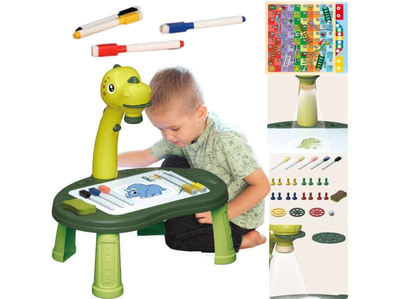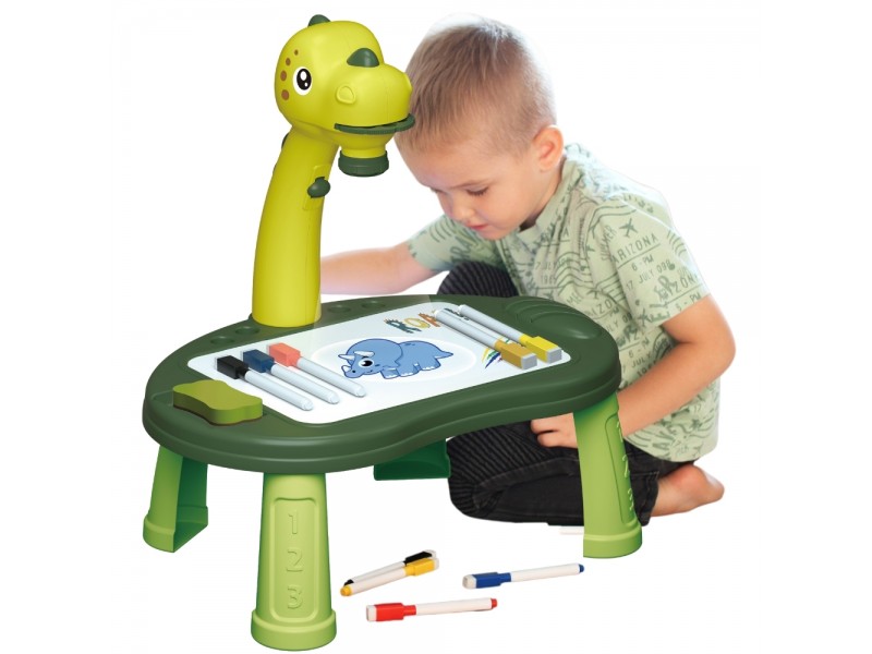Tablica do Rysowania od marki WOOPIE jest rewelacyjnym pomysłem dla dziecka lubiącego rysować i malować. Dziecko może usiąść przy stoliku i rozwijać swój talent do rysowania. Zabawka posiada rzutnik i 3 dyski tematyczne- to aż łącznie 24 wzory do odrysowania! W zestawie znajduje się 5 mazaków, gąbka do ścierania tablicy suchościeralnej oraz gra planszowa z pionkami i kostką. Zestaw do rysowania pozwoli dziecku rozwijać wyobraźnię, zdolności manualne i artystyczne od najmłodszych lat.