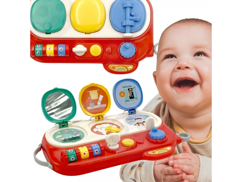 Dziecko odwraca, obraca, wciska i przesuwa różne elementy aby odkryć zawartość każdego okienka. Zabawka pomaga dzieciom rozwijać swoje umiejętności motoryczne, a także uczy je przyczynowo - skutkowego myślenia. Każda akcja ma konkretny efekt, co jest fascynujące dla młodych umysłów i zachęca do dalszej zabawy.