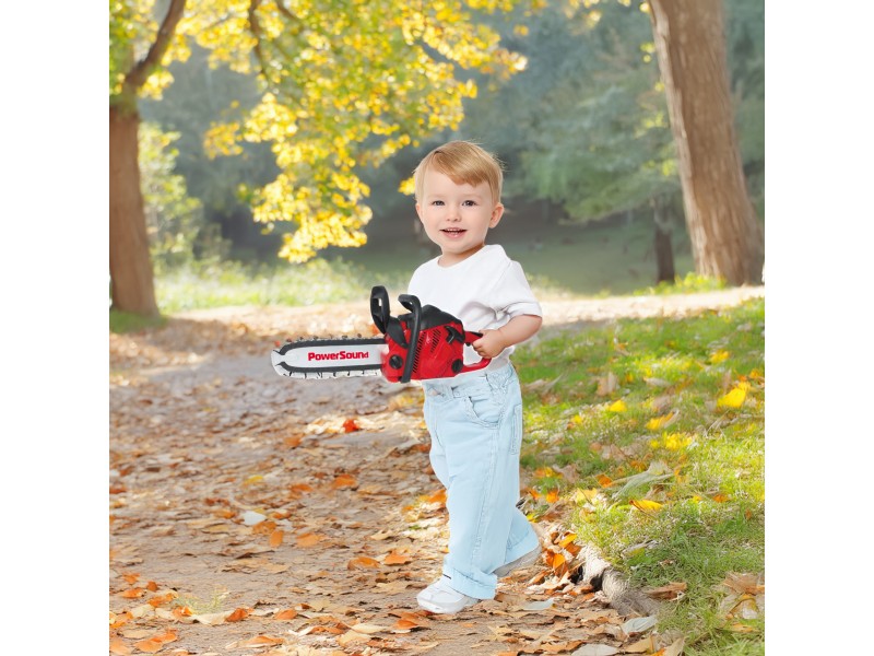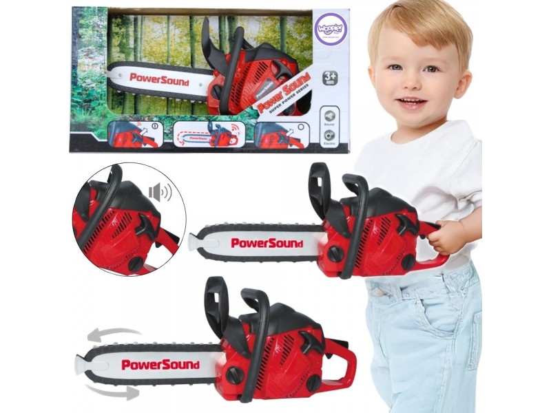 Zabawkowa piła spalinowa marki WOOPIE jest w 100% bezpieczna dla dziecka. Obracający się łańcuch zabawkowej piły spalinowej dla dzieci wykonany jest z gumy – nie ma ryzyka, że dziecko skaleczy się jakimś elementem i można bawić się nią w pełni bezpiecznie. Piła łańcuchowa dla dzieci nawet uruchamiana jest jak prawdziwa! Aby włączyć zabawkową piłę motorową należy pociągnąć w górę uchwyt rozruchu, następnie nacisnąć górny przycisk na rączce, a potem dolny przycisk. Po wykonaniu tych czynności łańcuch w zabawkowej pile spalinowej zacznie się obracać, a zabawka zacznie wydawać realistyczne dźwięki silnika. Zabawkowa piła motorowa rozwija wyobraźnię dziecka i pozwala mu poczuć się jak dorosły, który wykonuje ważną pracę.